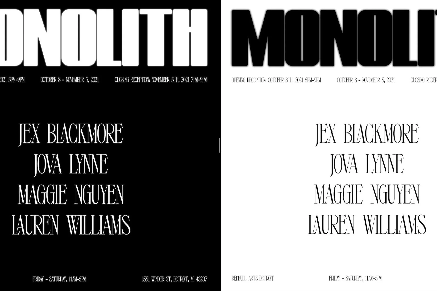 At Red Bull Arts Detroit, I had the opportunity to work as an art handler and graphic designer for the team. One of my tasks was to create the branding identity for the MONOLITH group exhibition held in 2021-2022. I was responsible for designing a range of assets, including wayfinding, exhibition wall text, social media assets, motion graphics, and more